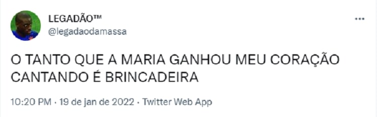 Além de cantar um trechinho da música que lançou com o Poética Acústica, Maria também apresentou parte de uma de suas músicas solos. A famosa ganhou muitos elogios dentro e fora do confinamento.