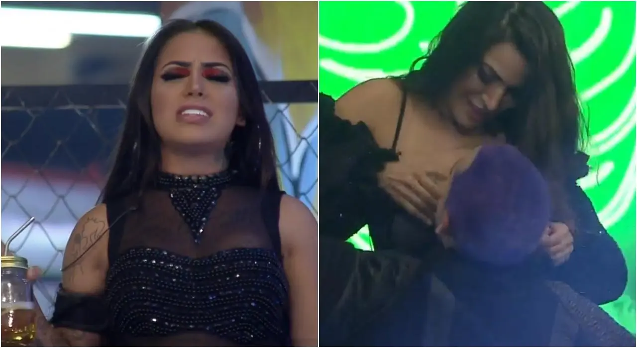 No início da noite, os dois curtiram o agito da festa ‘street’ na maior empolgação. Os dois dançaram juntos e diferente das outras festas, pareciam estar mais unidos do que nunca. Será que foi efeito do ‘casamento’ organizado pelos peões? O fato é que não sabemos, mas o público parece estar satisfeito com o romance dos dois. Prova disso, é após tantos ‘tapas’, agora é só beijo e azaração. É tanta intimidade entre os dois, que o youtuber até recebeu bebida da peoa, de um lugar bem inusitado diria. Pelas imagens, pareceu bem perto do seios.