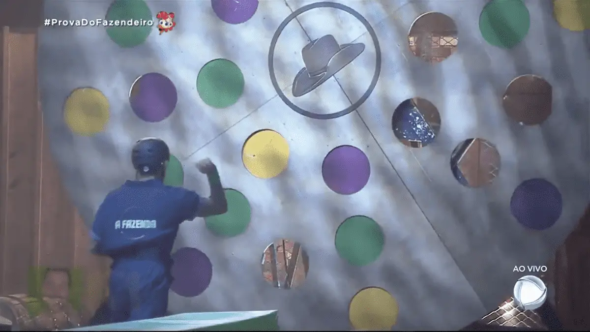 Representados pelas cores verde, roxo e amarelo, os peões tinham que passar por uma estrutura giratória para buscar as bolinhas que estavam de um lado do fazendão. Logo em seguida, arremessar nos alvos coloridos que estavam do outro. O peão que sobresse com sua cor no painel, se tornava o último fazendeiro de A Fazenda 2020.