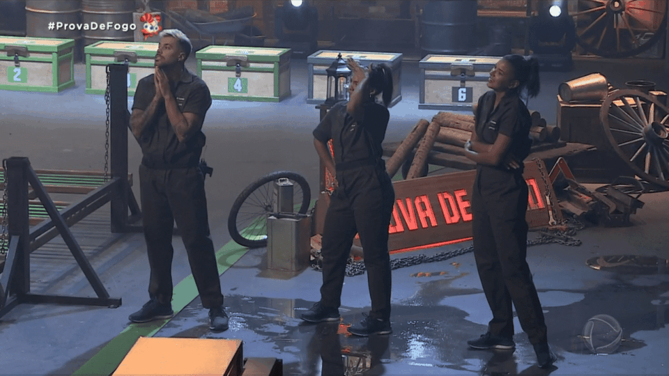O competidor tinha que passar uma chave por um labirinto de ferro para liberá-la em seguida. Depois, seguir o caminho em uma estrutura de ferro para abrir o baú correspondente a chave. Dentro de casa baú estavam letras que formavam a palavra ‘prova de fogo’.