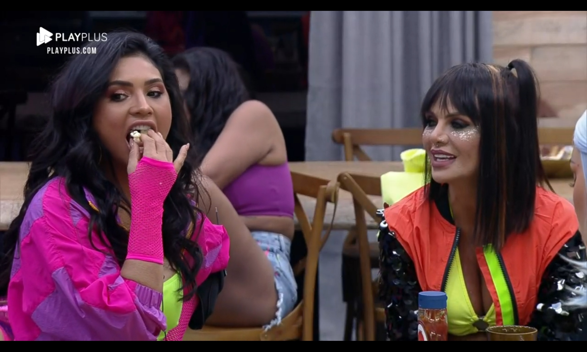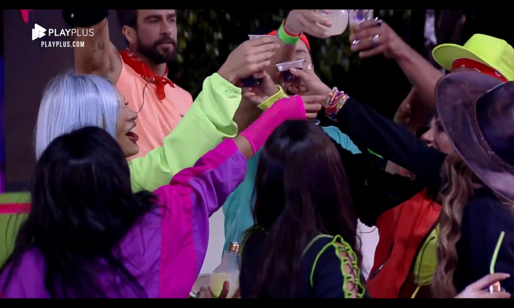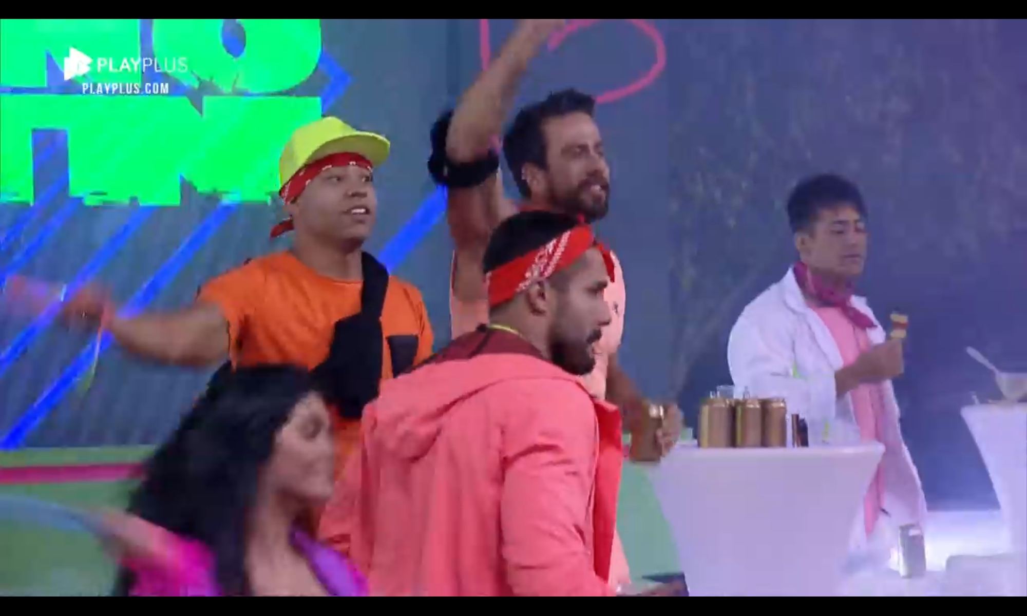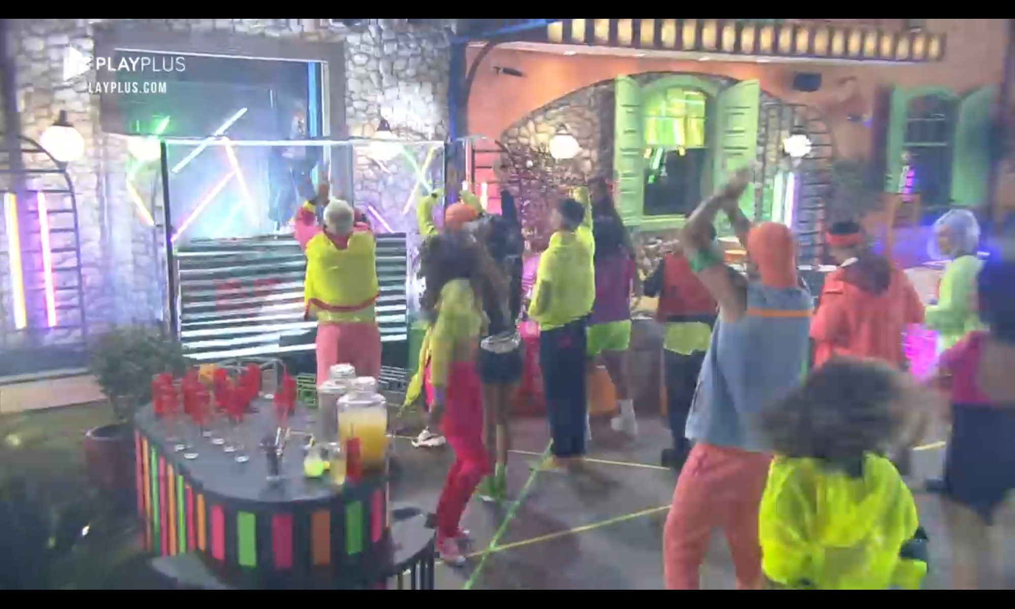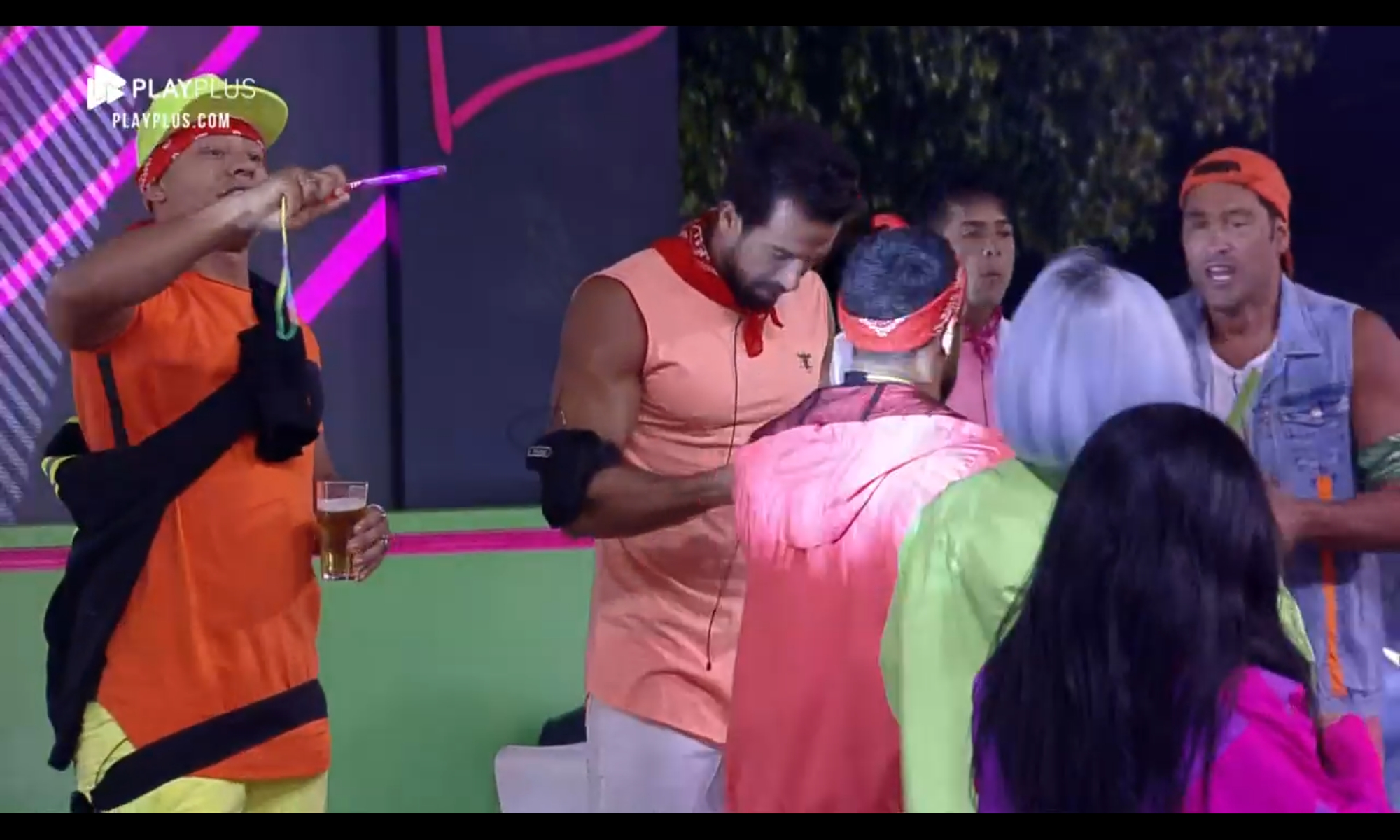 Como os peões estavam animados para a festa da Fazenda nesta semana, a produção tocou músicas antes mesmo do início do evento, o que fez o elenco dançar na sala. Nos looks, o elenco do programa vestiu cores fortes e chamativas, caracterizados com neon.