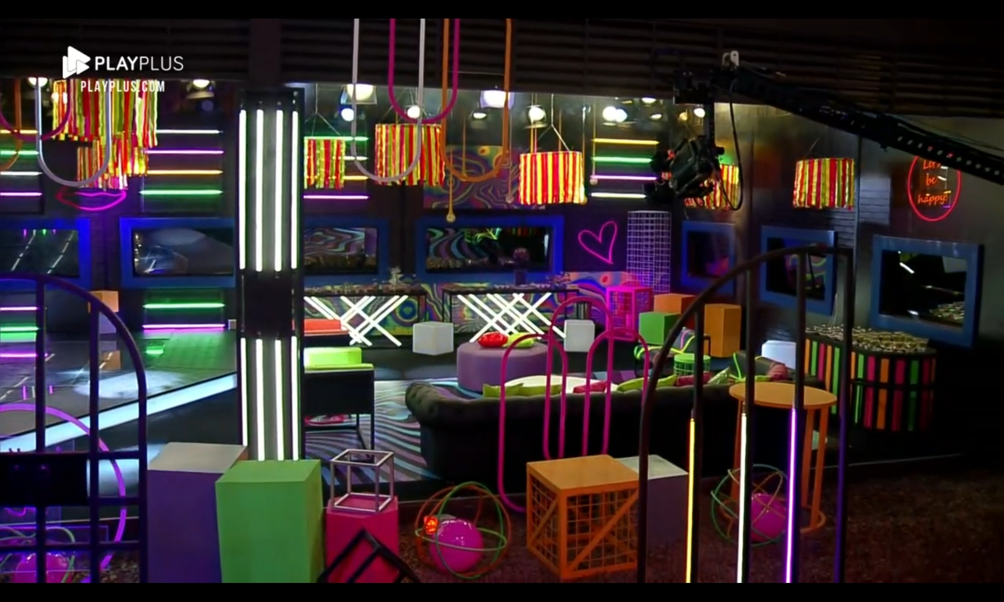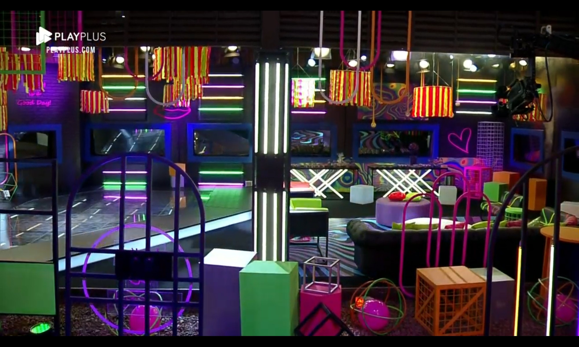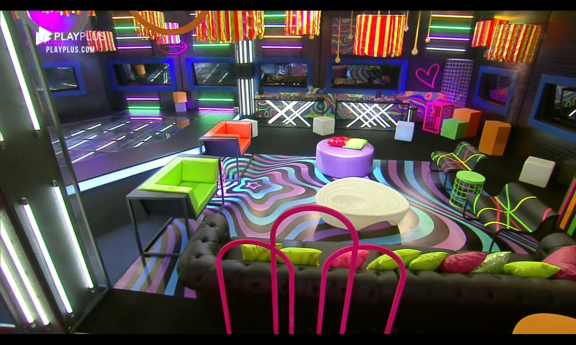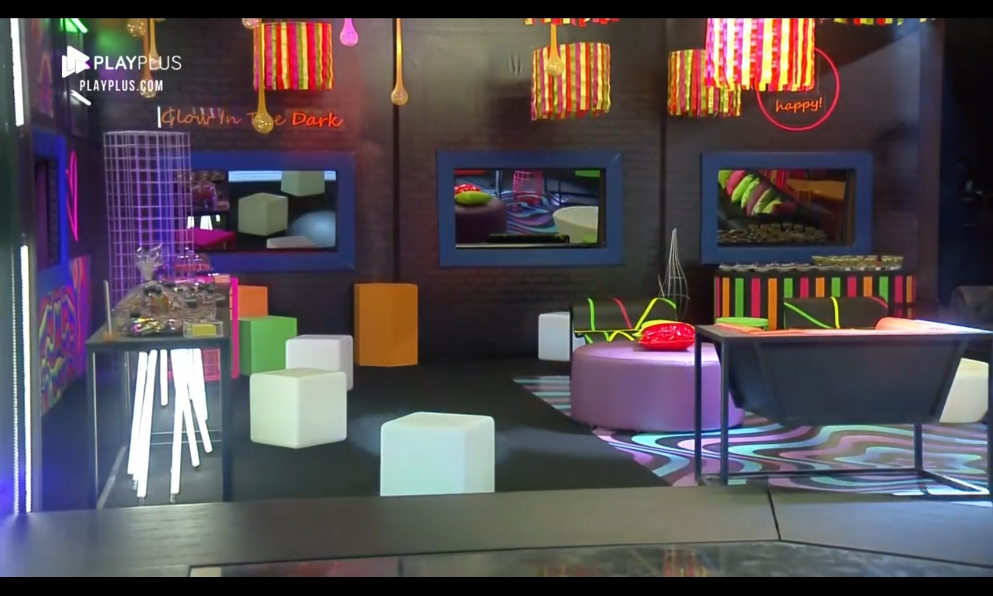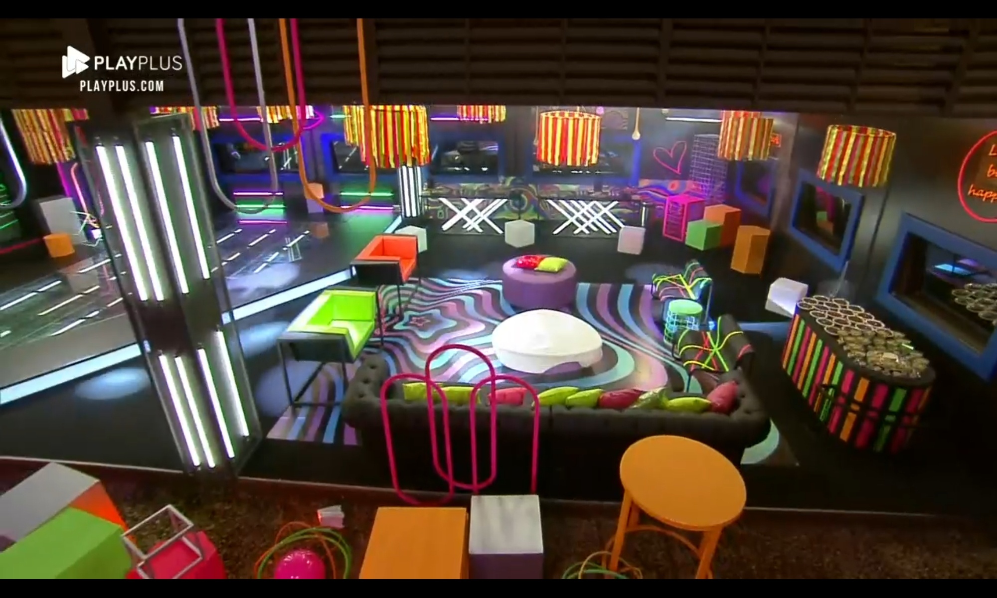 Na decoração, elementos igualmente coloridos, também seguindo a proposta neon. Bruno Martini, a atração do evento, estava dentro de uma caixa de vidro – seguindo os protocolos sanitários contra a Covid-19.