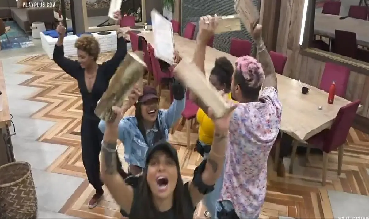 A produção do programa resolveu aceitar a ‘reivindicação’ dos confinados e enviou cerveja. Foi nesse momento que a sede virou uma bagunça, enquanto comemoravam, Lipe e Biel subiram na mesa de A Fazenda e começaram a dançar. As peoas correram, começaram a gritar e dançar.