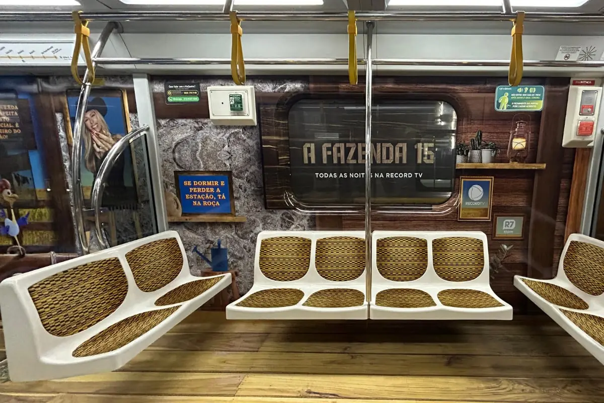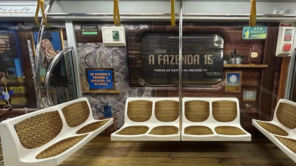 A Linha 4-Amarela do metrô de São Paulo agora tem um vagão temático de A Fazenda 15, que estreia na 3ª feira, 19 de setembro. E agora, mesmo quem não está confinado poderá se sentir como um dos peões ou peoas do programa rural.