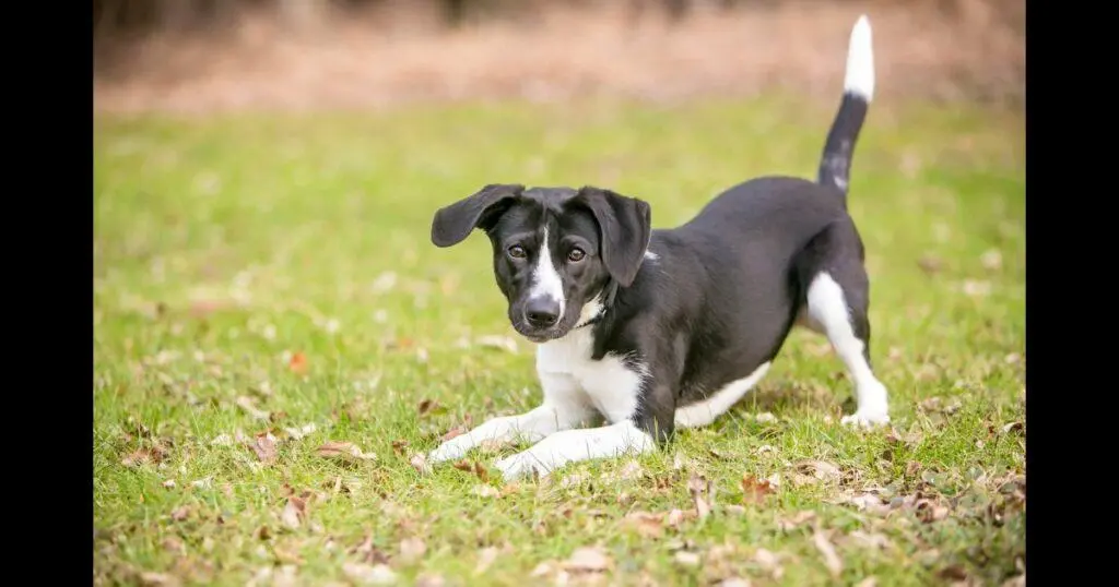 Seu cachorro abaixou a frente na posição clássica com o rabo para cima? O cachorro está super feliz, chamando os outros para brincar.