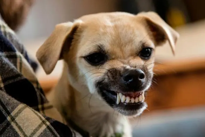 Seu cachorro está rosnando, mostrando todos os dentes da frente até o fundo? Ele está defendendo o seu espaço, seu dono ou sua alimentação. Neste caso, seria por territorialidade. Geralmente acontece com cães de grande porte ou cães que não saem de casa e não foram socializados. Podendo também ser causado por medo.