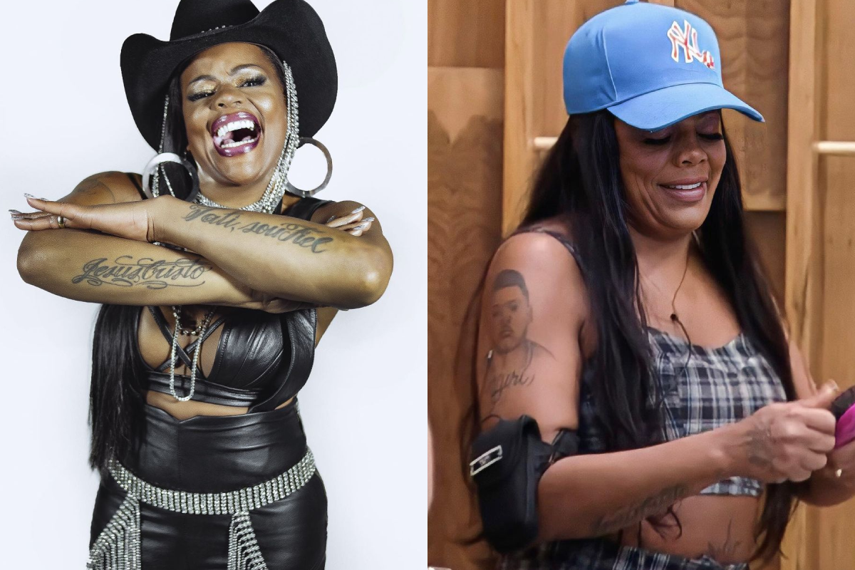 Um dos nomes mais comentados da Fazenda 2021, Tati Quebra Barraco tem algumas tatuagens pelo corpo. As mais aparentes são nos braços. No antebraço, a peoa tem escrito a palavra ‘Jesus Cristo’ e na parte superior o retrato do filho, que foi assassinado, no Rio de Janeiro, em 2016. Yuri tinha 19 anos.