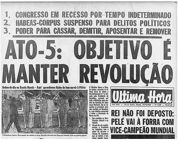 Emitido durante o governo do presidente militar Artur da Costa e Silva, o AI-5 marca oficialmente um dos piores períodos da ditadura. Quando emitido, o Ato Institucional permitiu que o presidente fechasse o Congresso Nacional e as Assembleias Legislativas de todos os estados; dando poderes legislativos ao presidente e aos governadores. Fora isso, o poder executivo tinha o direito de destituir quaisquer políticos eleitos e juízes que apresentassem ideias ou atitudes “subversivas” contra o regime instaurado.