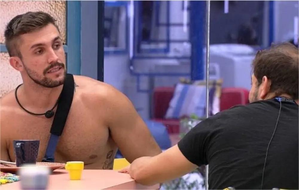 Na cozinha da xepa, ao lado de Projota, Arthur disparou para Caio: “Da próxima vez você fica rindo mais na hora que eu estiver dormindo de boca aberta. Me acorda de novo, é legal ser acordado. Já estou sendo zoado lá fora por milhares de pessoas, legal ter meus amigos fazendo isso comigo aqui dentro também”.