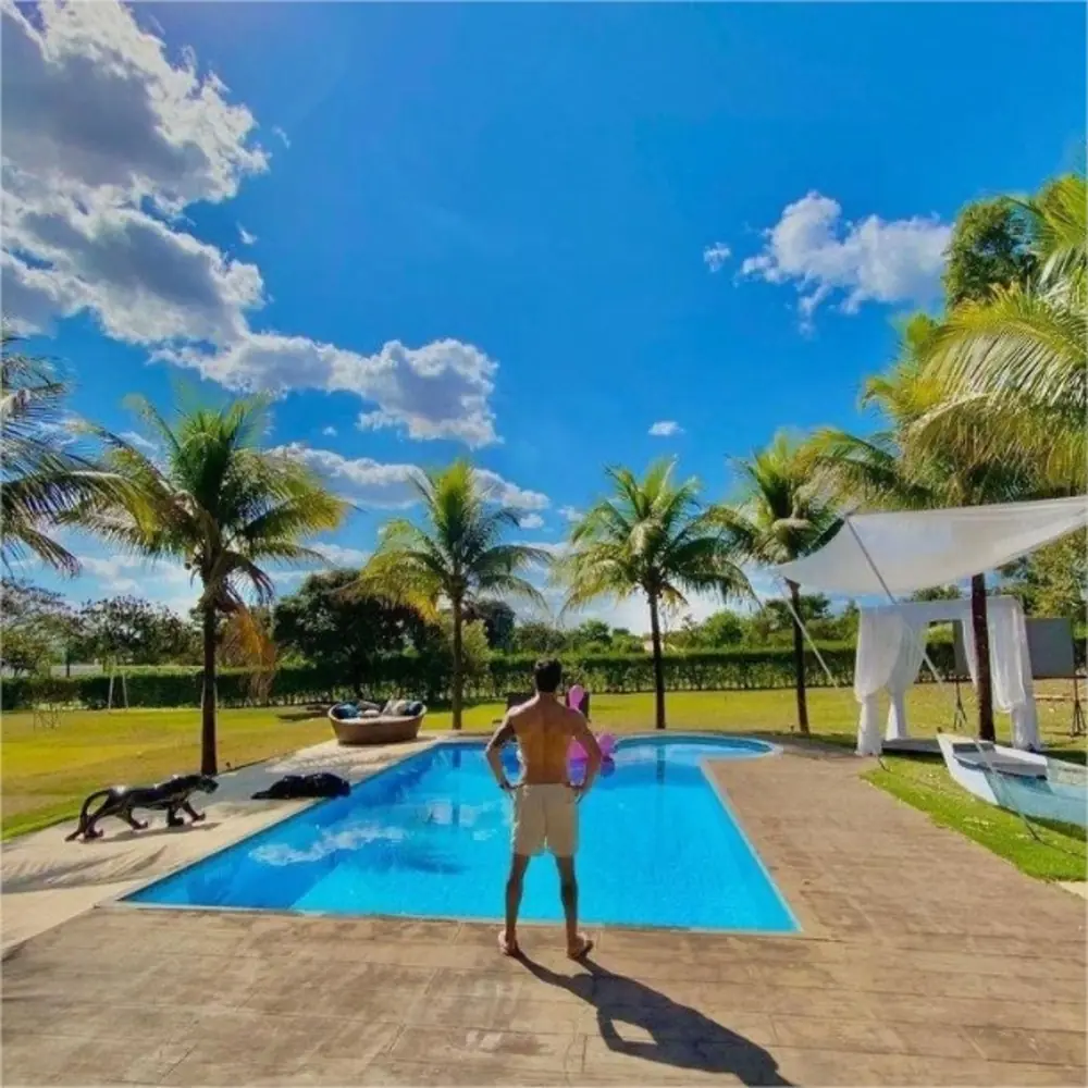 Nas redes sociais, Rodolffo não esconde os bens conquistados ao longo da carreira. De acordo com informações do UOL, a mansão do cantor está localizada em um dos mais requintados condomínios de Goiânia. Ainda de acordo com o portal, o lar do sertanejo conta com uma enorme área de lazer, piscina, campo de futebol, churrasqueira, fogão à lenha e hidromassagem. Veja as fotos abaixo.