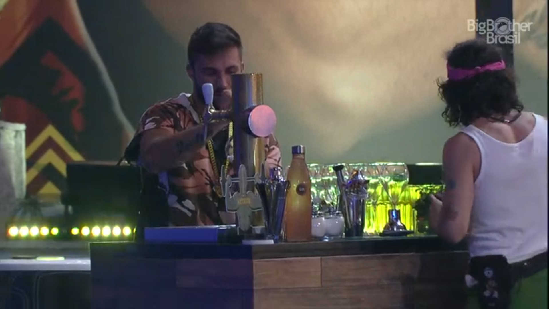 O início da festa foi marcado por reclamações do anfitrião sobre as bebidas solicitadas no confessionário. Segundo Arthur, a produção do reality show colocou apenas uma garrafa de gin, e apostou na cerveja e na água tônica. Apesar das reclamações, o líder seguiu curtindo a playlist do evento.
