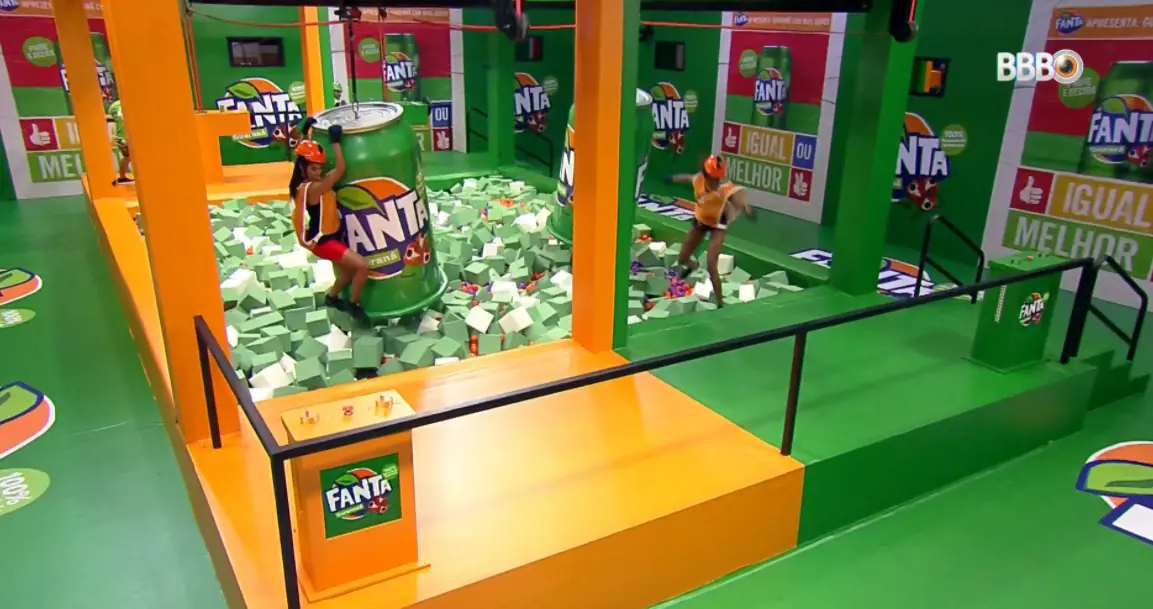 A última prova do anjo foi em dupla e de revezamento e rapidez. Os participantes tinham que trazer duas latas de refrigerantes de um lado para o outro.