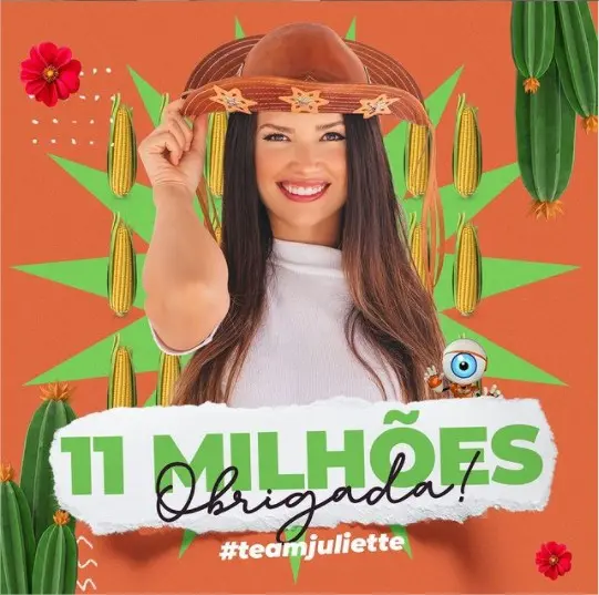 Juliette – A paraibana , que antes de entrar na casa tinha 3 mil seguidores, hoje ultrapassa a marca de 11,7 milhões de fãs. Ela é a participante do grupo pipoca mais seguida. Do BBB21, ela perde somente para Pocah e Viih Tube, ambas já famosas antes de entrar no reality.