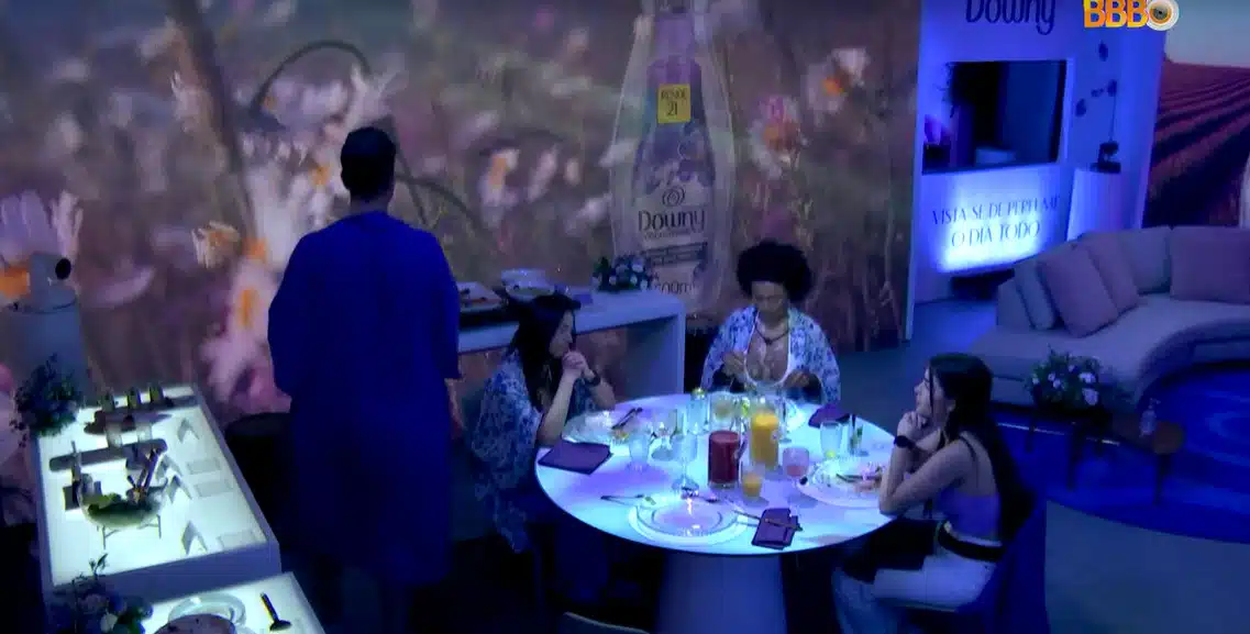 Por volta das 14h, horário de Brasília, Jade Picon foi chamada para participar do almoço do líder no BBB 22, patrocinado por uma marca de amaciantes. A ação acontece no espaço multiuso da casa.