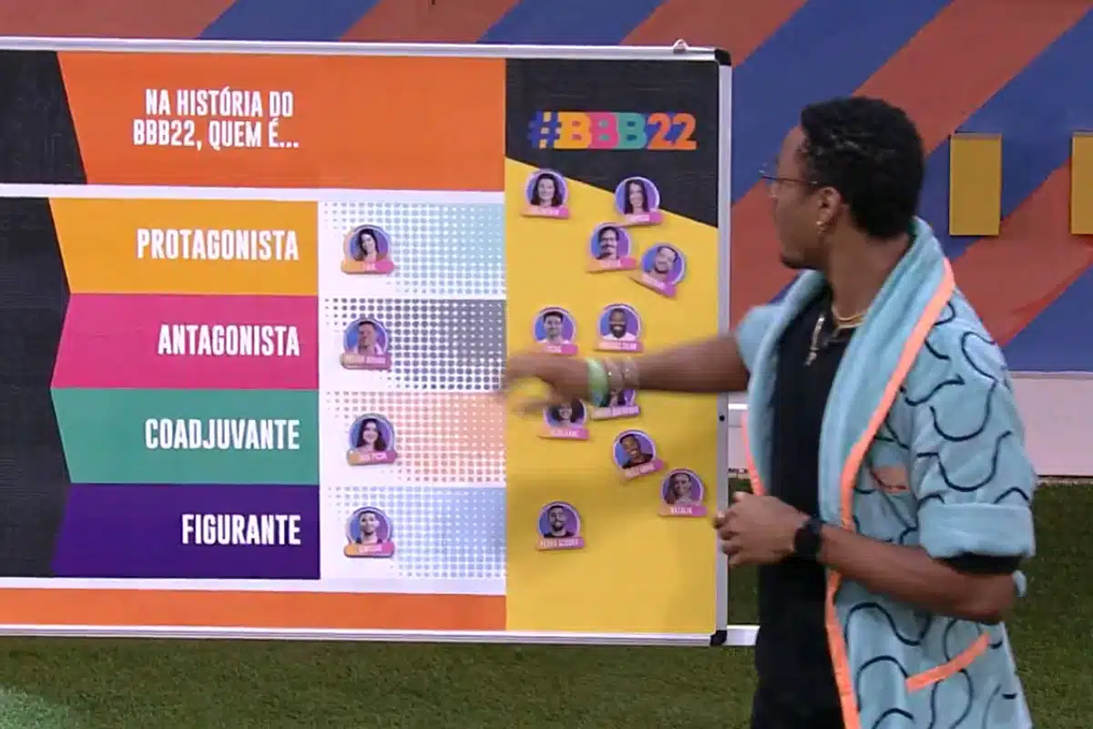 Nesta semana, o Jogo da Discórdia do BBB 22 convidou os participantes papeis de uma história na dinâmica: as plaquinhas foram “protagonista”, “antagonista”, “coadjuvante” e “figurante”.