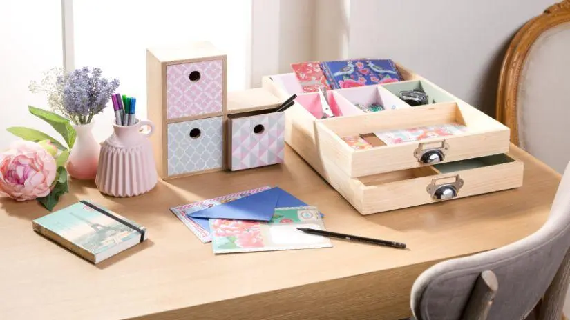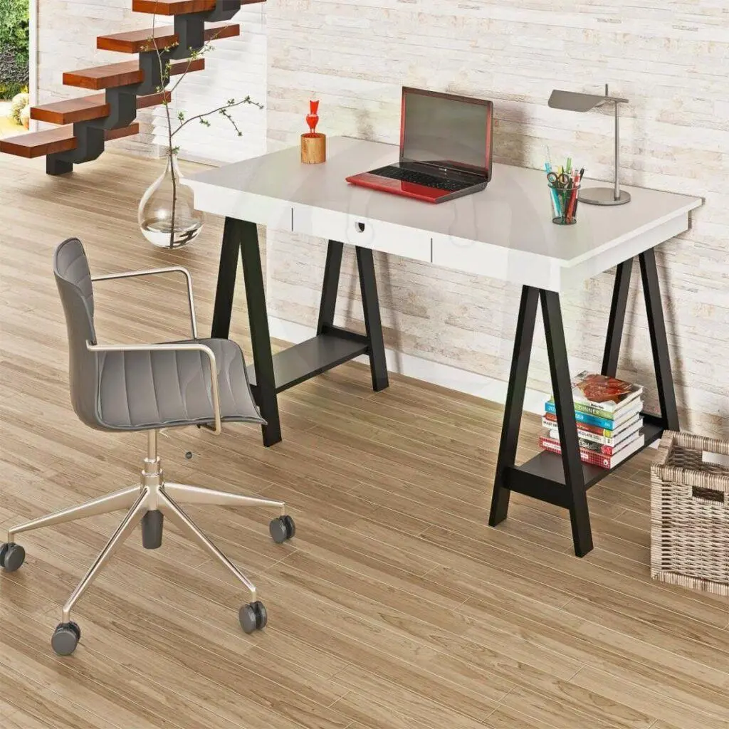 Opte pela opção mais bonita e funcional, desde que tenha gavetas para guardar o material de trabalho e um bom espaço para trabalhar e ter objetos decorativos em cima.