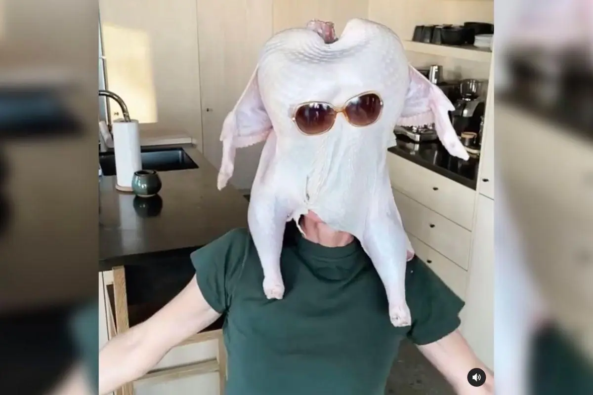 Cox então acrescentou: “De qualquer forma, já que sou o símbolo do Dia de Ação de Graças, aqui está, espero que isso o faça feliz”. A atriz então mostrou a si mesma dançando com o rosto enfiado no que parece ser um peru de verdade.