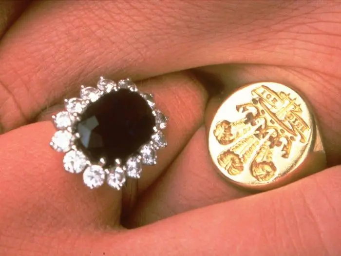 O anel foi desenhado pelo joalheiro Garrard, mas foi escolhido pela futura princesa em um catálogo, o que significa que tecnicamente qualquer um poderia ter comprado o anel de safira e diamante.