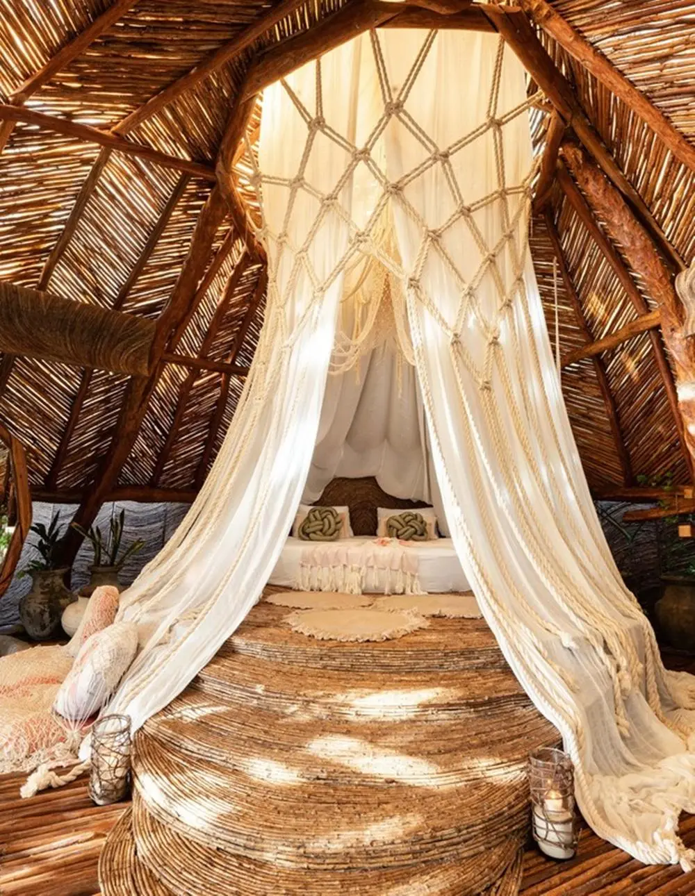 O local apresenta casas rústicas e chiques com telhados de colmo e terraços com vista para o mar e para a floresta. As casas do resort contam com banheiros com banheira no quarto, camas com mosquiteiros e até cofres. Algumas das casas do resort contam camas suspensas, acesso privado à praia e banheira externa.