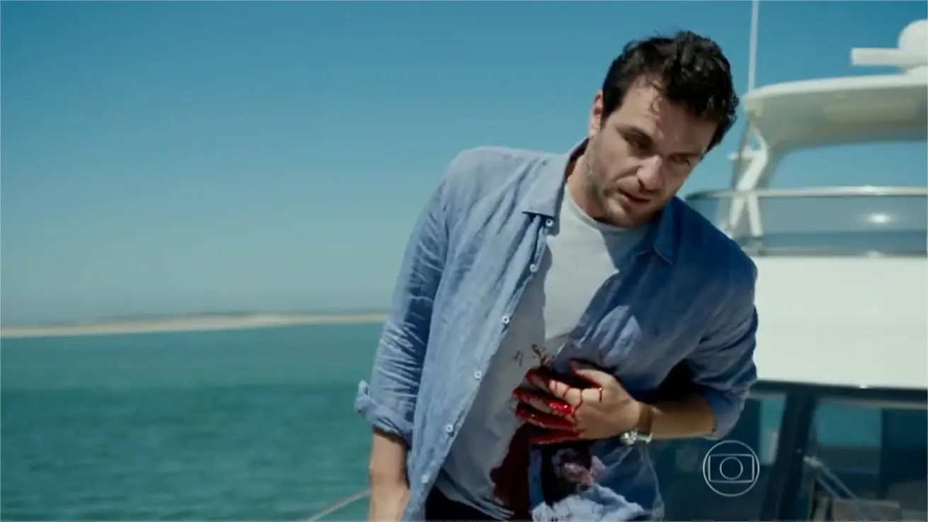 Para a polícia, a modelo diz que o milionário sofreu um acidente e caiu no oceano. Angel termina a novela casada com Guilherme (Gabriel Leone).
