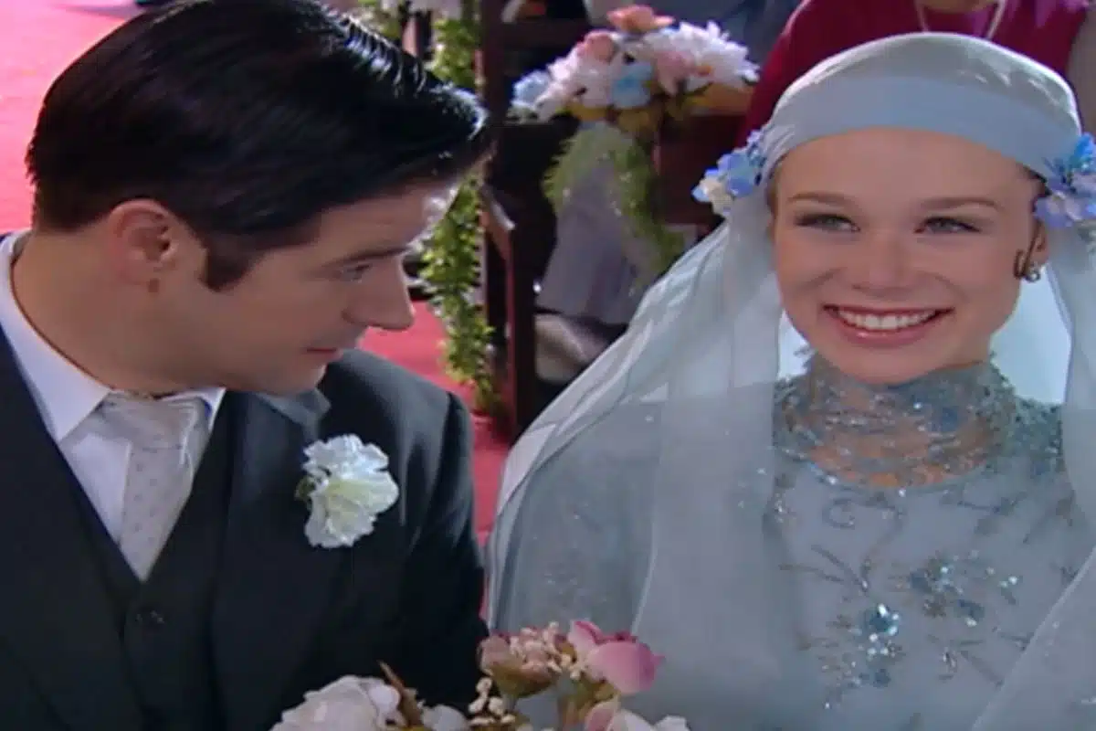 Após descobrir que é pai de Tonico (Guilherme Vieira), Danilo (Murilo Benício) pediu Aninha (Mariana Ximenes) em casamento. A mocinha aceitou o pedido do amado, mas já chegou ao altar e deu para trás antes na novela Chocolate com Pimenta. Será que ela enfim se casa com o rapaz? Para a alegria dos fãs do casal, a dupla finalmente troca alianças dessa vez.