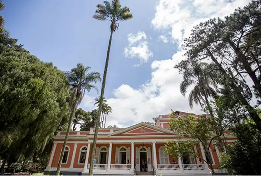 A construção, em estilo neoclássico, foi pintada em tom de tijolo característico das residências pertencentes à família imperial do Brasil durante o período imperial brasileiro (1822-1889)