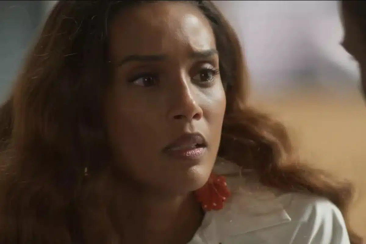 “Você não cansa de dar bandeira?”, indaga ela. “Regina, saiu tudo errado. Minha irmã tá morta por minha culpa”, desabafa Leonardo. “Para de repetir isso. As coisas saíram do controle. Mas você não pode fazer nada agora”, responde a mulher.