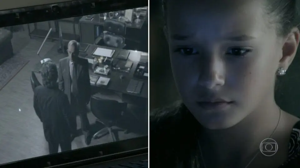 Em seguida, ela corre para contar para Maria Marta, que fica em dúvida sobre a informação: “essa acusação é muito séria”. “Tenho certeza absoluta, ele está enganando todo mundo”, afirma a menina. A personagem de Lilia Cabral então resolve tirar o assunto a limpo, as duas vão até o comendador e contam tudo o que sabem. Durante uma procura pela sala, José Alfredo encontra a câmera escondida.