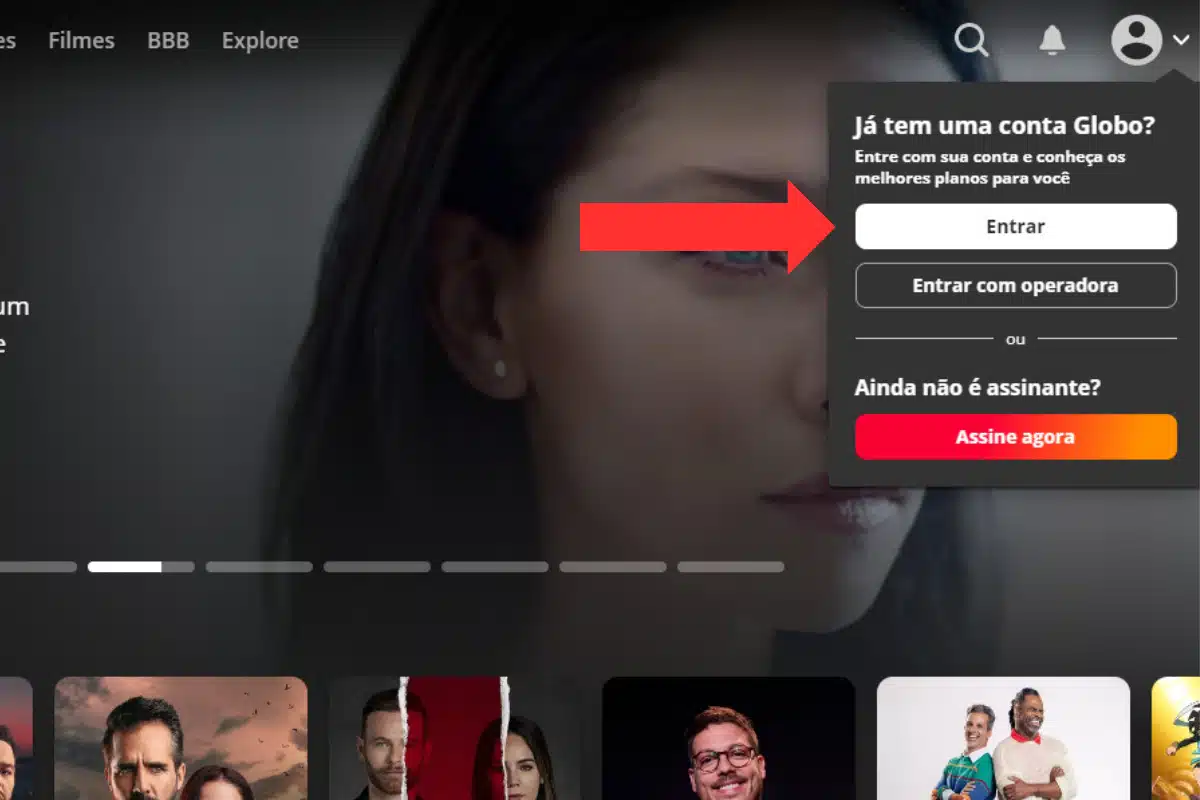 Passo 1: entre no Globoplay. A plataforma pode ser acessada por navegadores no smartphone, computador ou baixando o aplicativo.