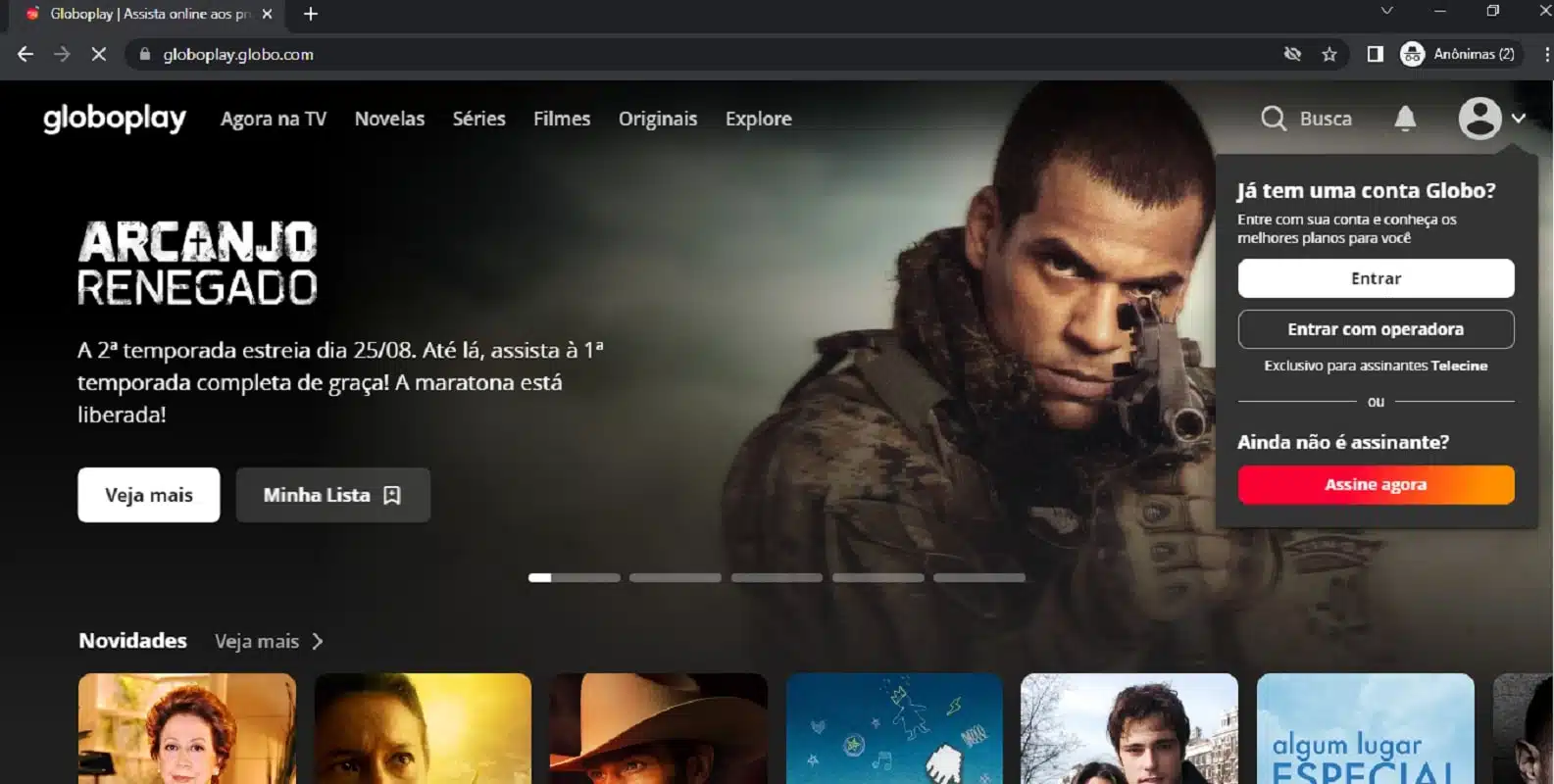 Lembre-se de usar um e-mail de verdade e válido, pois será necessário confirmar a sua conta. Feito isso, você terá um login e senha no site e já estará apto a como assistir online Mar do Sertão ao vivo pela aba “Agora na TV”.