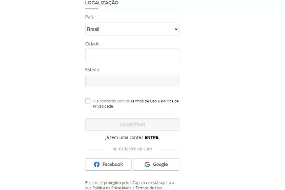 Você precisará informar as mesmas coisas que são pedidos na versão do computador, nome completo, e-mail, gênero, data de nascimento, cidade, estado e país. Por último, crie uma senha e selecione a caixa que informa que você leu os termos de uso. Depois, é só clicar em “cadastrar” e finalizar o processo.