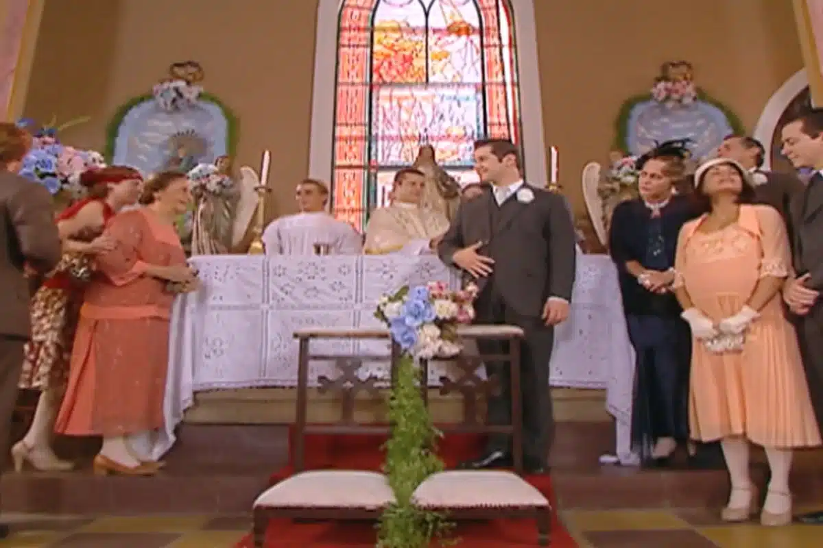 Danilo é o primeiro entre os noivos ao chegar na igreja e segue até o altar para esperar por Aninha. Enquanto a cerimônia não começa, uma discussão toma conta da igreja. Elvira (Lucinha Lins), Leonardo (Lauro Góes), Timóteo (Marcello Novaes) e Carmem (Laura Cardoso) acabam brigando por conta das várias reclamações da mãe de Danilo.