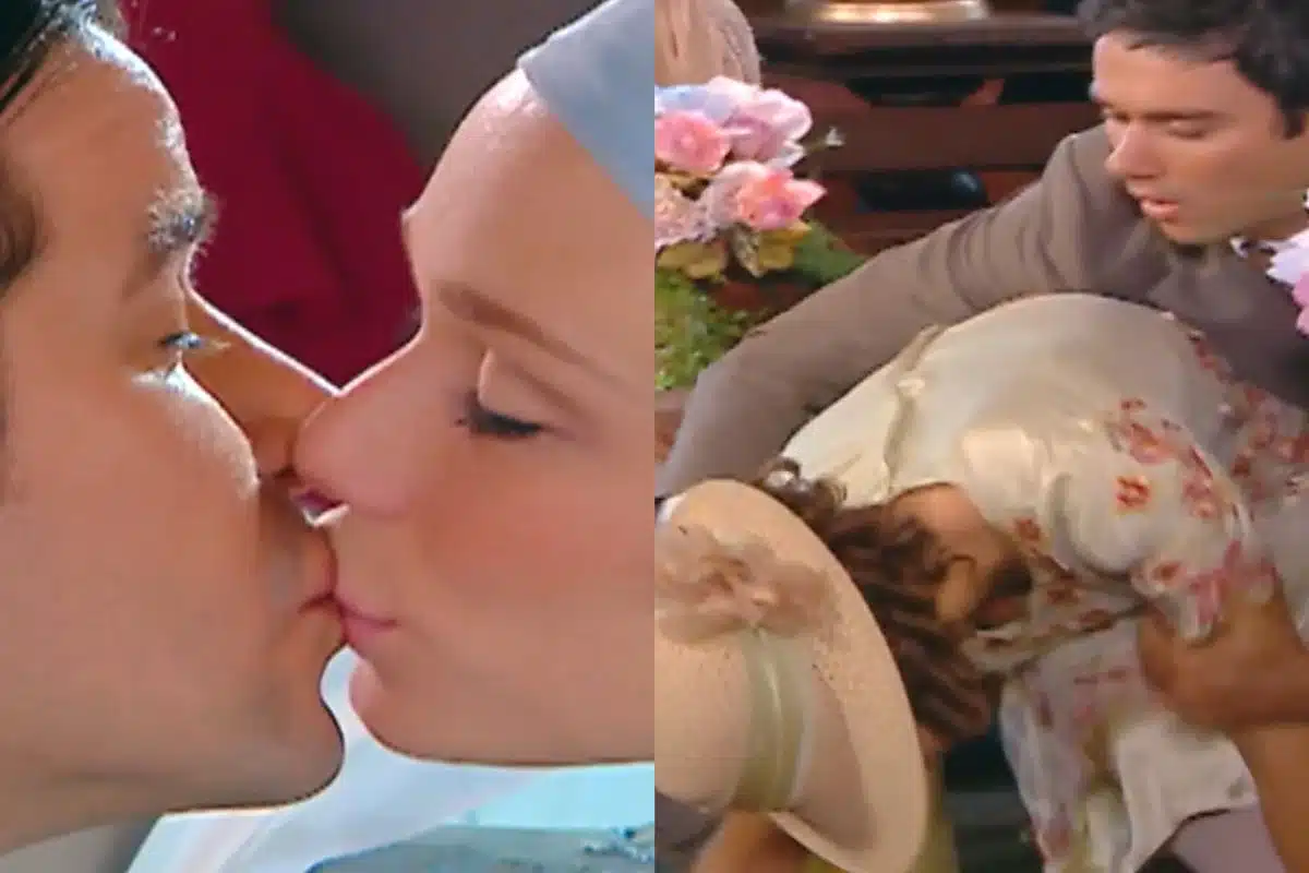 Quando o casal troca as alianças e dá um beijo para selar a união, quem se enfurece é Olga (Priscila Fantin), que desmaia. Apesar da cena da megera, a cerimônia continua e a dupla sai casada da igreja.