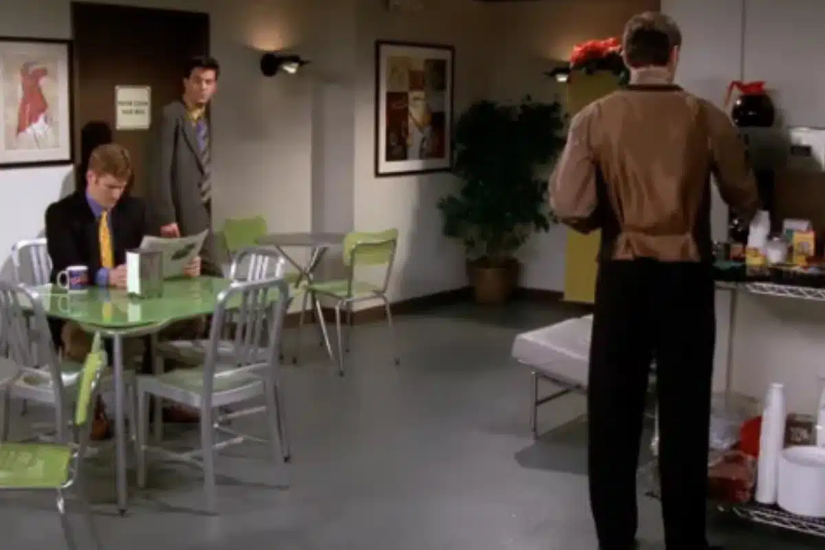 Exibido em 12 de dezembro de 1996, o episódio Aquele em que a Rachel Pede as Contas mostra justamente a vez em que a personagem de Jennifer Aniston decidiu deixar o emprego no Central Perk. Outros personagens também estão passando por turbulências em relação a um emprego no Natal.