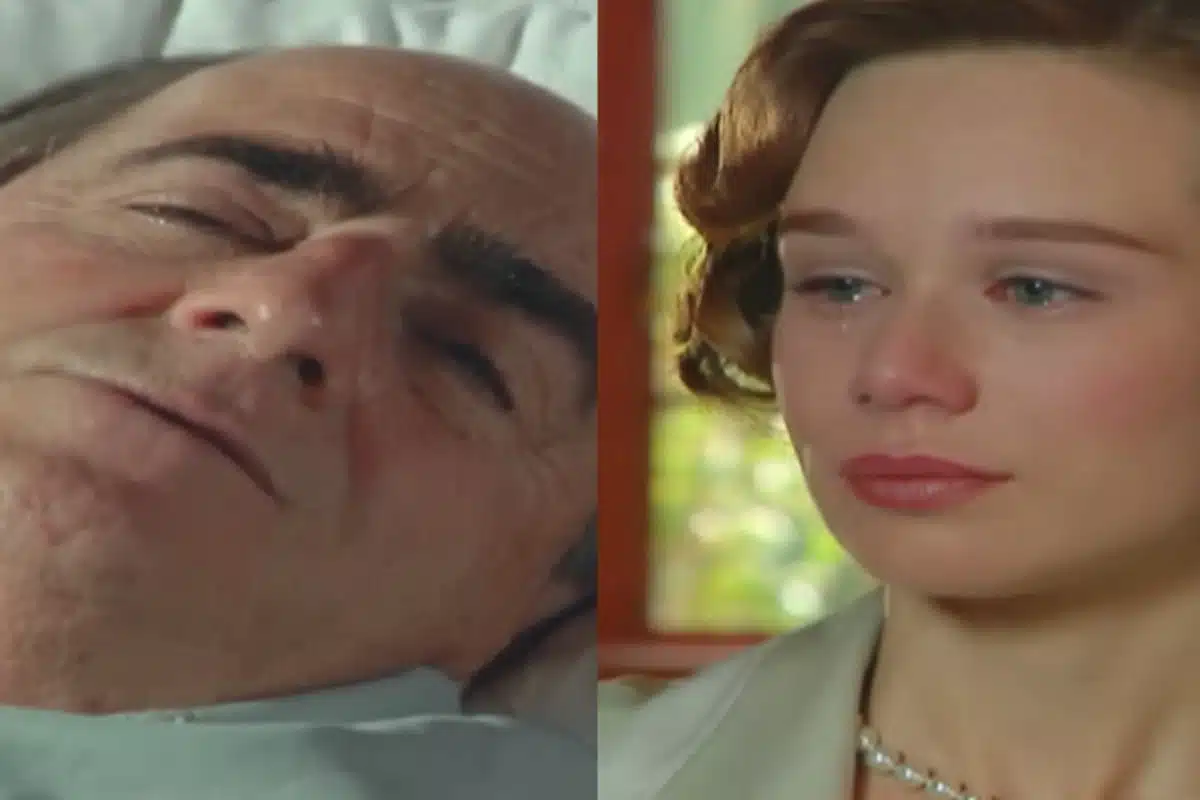 Ana Francisca se aproxima lentamente e beija a testa do marido, que logo em seguida falece.