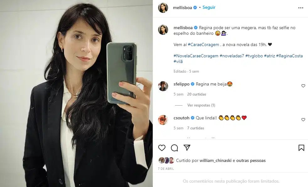 Mel Lisboa retorna à Globo depois de 15 anos para interpretar Regina em Cara e Coragem, amante do vilão Leonardo (Ícaro Silva). A atriz ficou conhecida por viver a protagonista do seriado Presença de Anita em 2001, e passou os últimos anos atuando em séries e filmes. A partir de 30 de maio, a audiência verá a atriz retornando aos folhetins na pele da alpinista social criada por Claudia Souto.