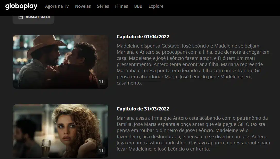 Pantanal está em destaque na página inicial do Globoplay. A obra também está disponível na aba ‘novelas’ ou procurando pelo nome do folhetim no campo de busca. Depois é só clicar em cima do episódio desejado para dar o play.