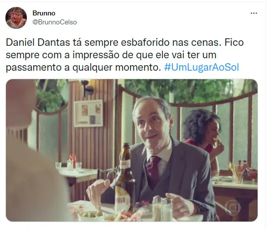 Em Um Lugar ao Sol, o veterano ator Daniel Dantas, 67 anos, interpreta Túlio, marido de Rebeca (Andrea Beltrão). O ator tem chamado a atenção do público por sua atuação e maneira de falar. A repercussão na web foi tão grande que Letícia Sabatella, atriz e namorada do artista, veio à publico defender o famoso.