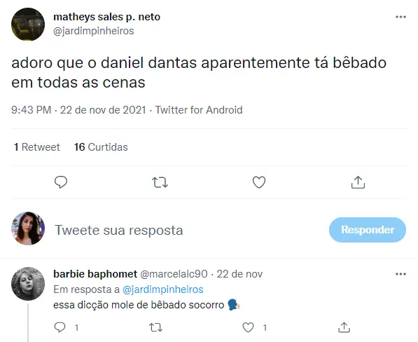 Em Um Lugar ao Sol, o que mais tem chamado atenção do público é a dicção do ator. Para parte da audiência, Daniel tem falado de forma “arrastada” como se estivesse sem fôlego. “Gente, essa falta de ar, falta de fôlego, é do personagem Túlio ou é do Daniel Dantas?”, questionou uma espectadora. Alguns internautas até passaram a questionar se o ator está com algum problema de saúde.