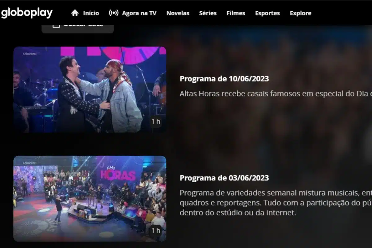 Caso perca o programa e queira assisti-lo mais tarde, todas as edições do Altas Horas são disponibilizados na íntegra na plataforma da Globoplay. Não é necessário ser assinante para conferir o conteúdo, apenas ter uma conta grátis.