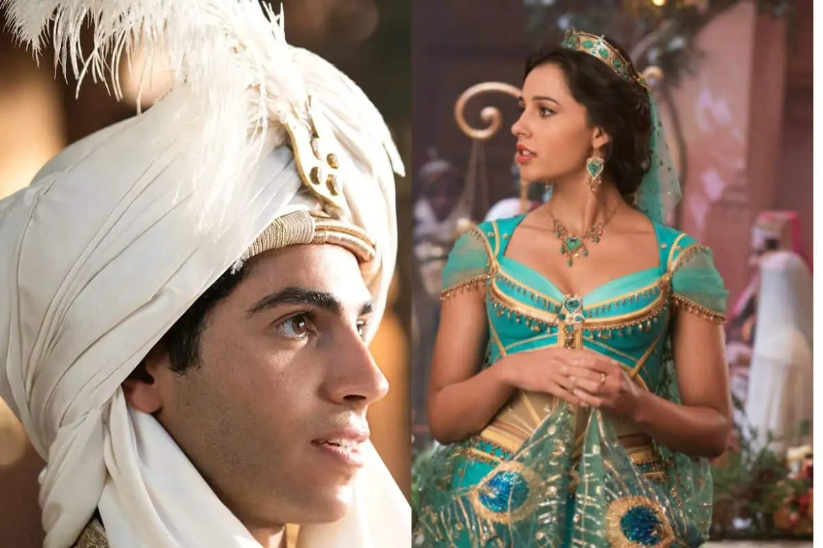 Na história do longa metragem, o público acompanha o personagem título, interpretado por Mena Massoud, que é um jovem humilde que comete pequenos roubos por Agrabah e certo dia encontra uma lâmpada mágica.