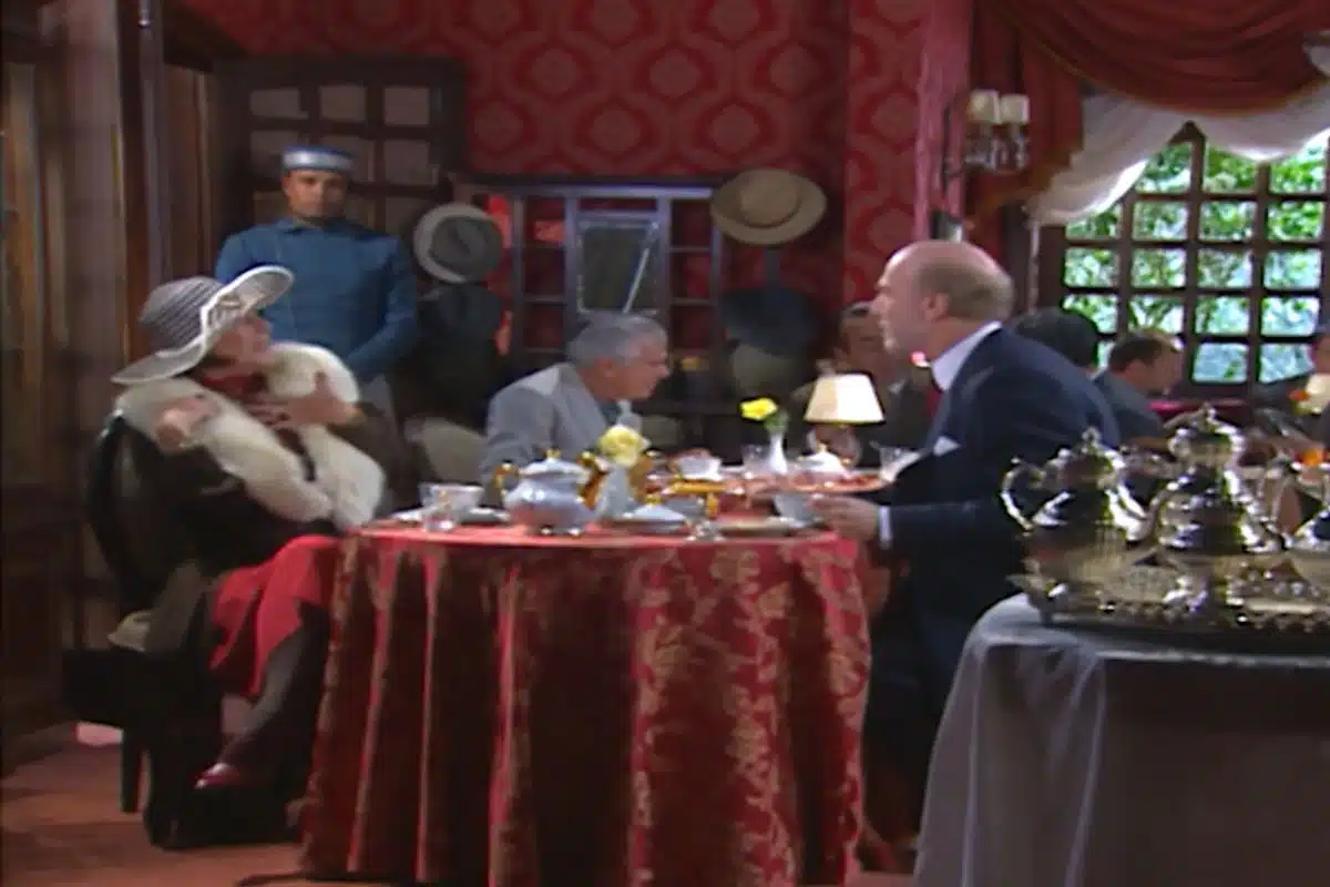 O conde não gosta de comparecer na cerimônia e diz que sente humilhado, mas é repreendido pela nova companheira. “Falando assim até parece que está com ciúmes. Olha que fico brava hein. E se fico brava só me acalmo com joias novas”, ameaça a idosa, que passa a mandar no teimoso conde.