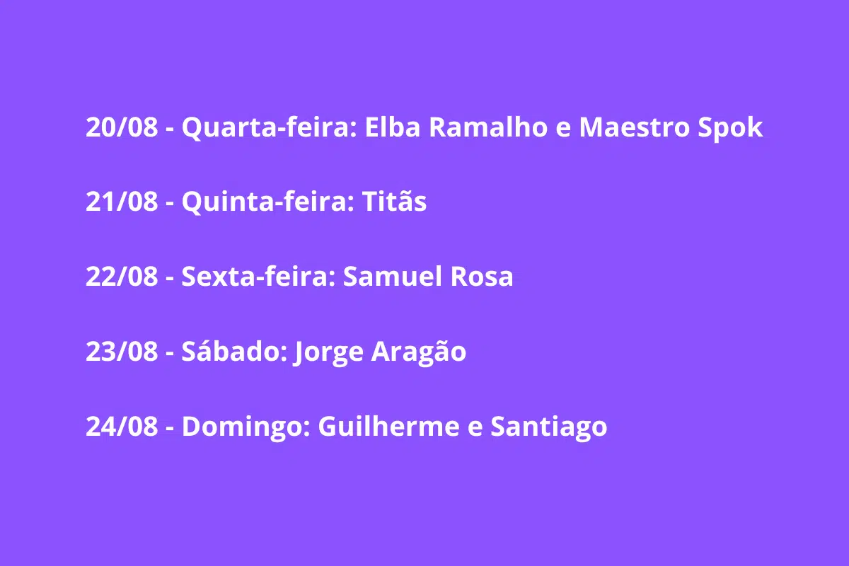 Neste ano, o Festival de Inverno de Bonito promete atrair visitantes de todo o Brasil com shows de artistas consagrados, como Elba Ramalho, Titãs, Samuel Rosa, Jorge Aragão e a dupla Guilherme e Santiago, além de uma agenda cultural paralela com espetáculos de teatro, dança, oficinas e atividades formativas.
