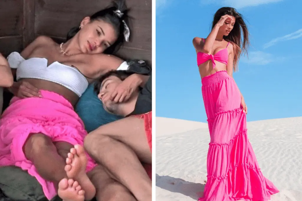 O que também chamou atenção nas redes sociais é a saída de praia na cor azul turquesa. O modelo é vendido pela Pajaris com o nome “Chemise Bali Turquesa”. A peça tem amarração frontal, modelagem contemporânea super moderna, e produzida com tecido leve e delicado.