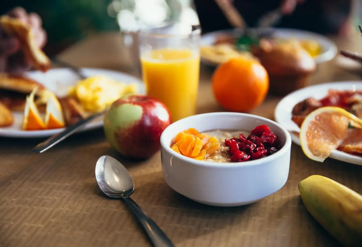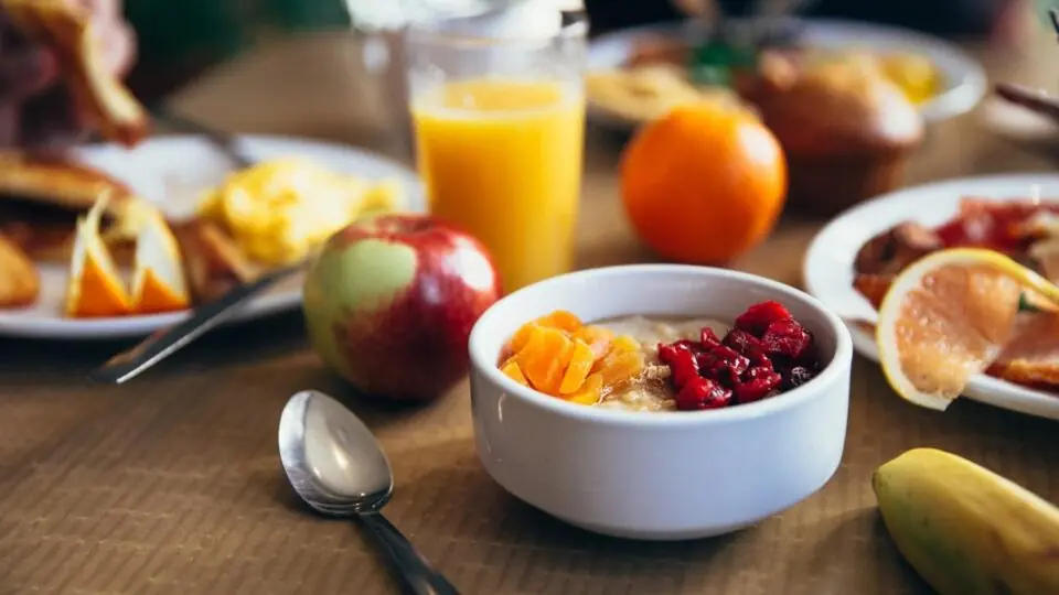 Um café da manhã saudável pede muitas frutas e ingredientes que não contém muita gordura. Além disso, você pode fazer substituições, por exemplo, utilizar a aveia ou outras farinhas mais nutritivas em vez da farinha de trigo branca normal.