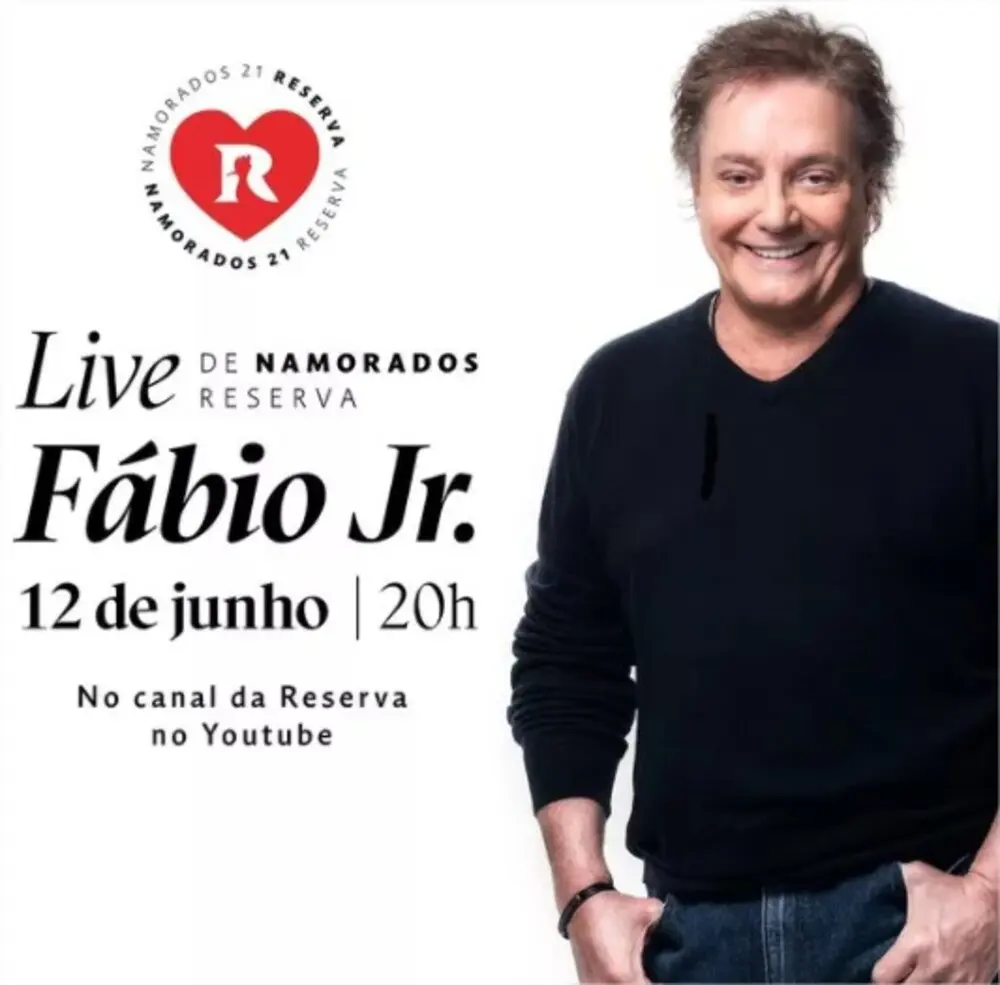 O dono de diversos hits românticos não poderia ficar de fora da agenda de lives para o Dia dos Namorados. O cantor Fábio Jr. vai cantar seus maiores sucessos em uma live em parceria com a marca de roupas Reserva.