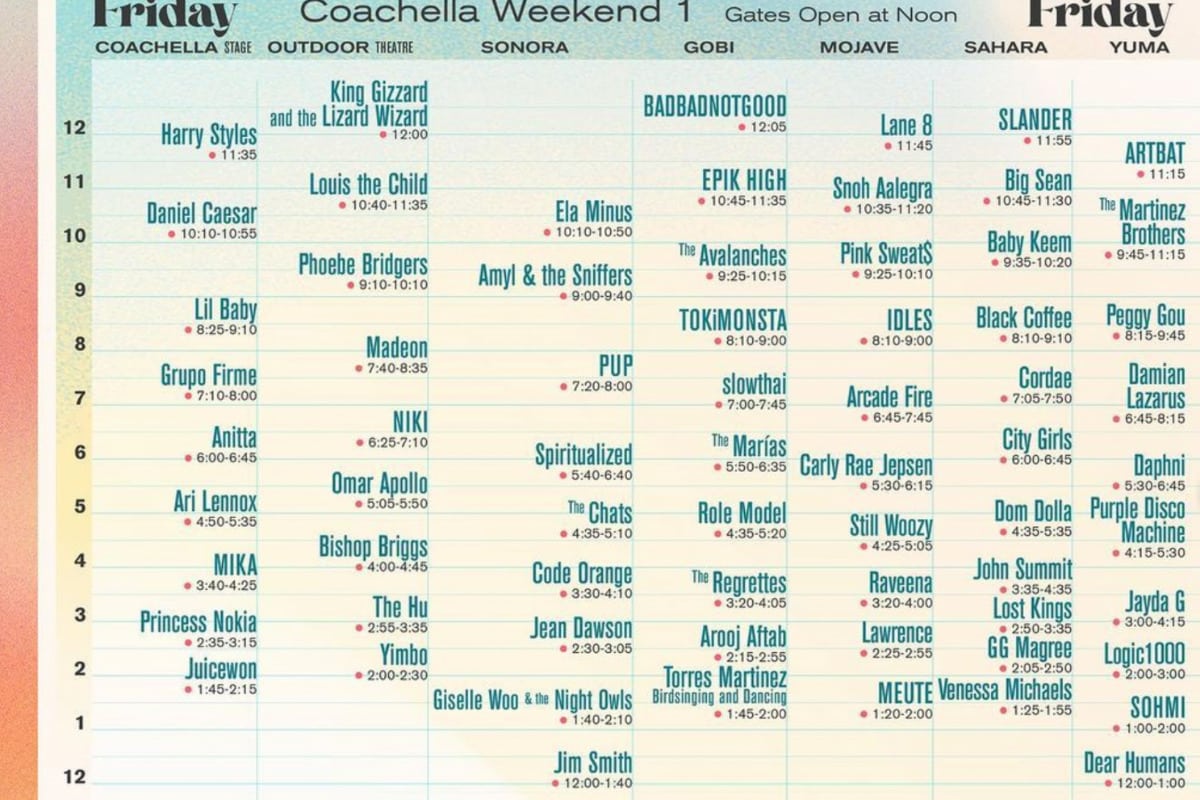 O cantor de ‘Watermelon Sugar’, Styles, deve ser a atração principal nas duas sextas-feiras, com Billie Eilish nos sábados e agora The Weeknd e Swedish House Mafia serão a atração principal no domingo, depois que West se retirou.