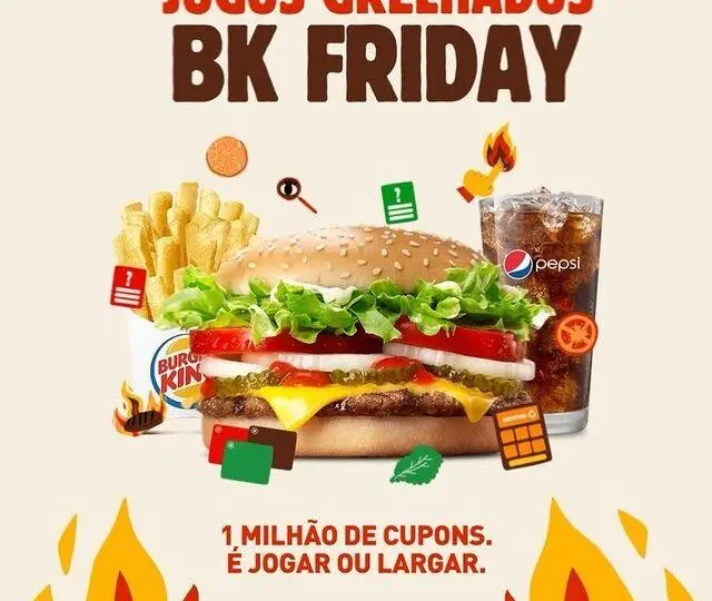 Primeiro, é preciso acessar o site da Black Friday do Burger King, ou simplesmente BK Friday, para participar de Jogos Grelhados, que conta com games como quizzes e pegadinhas. A saber, a plataforma está funcionando desde o início da semana. Ao jogar será possível conquistar cupons, há 1 milhão de cupons disponíveis.
