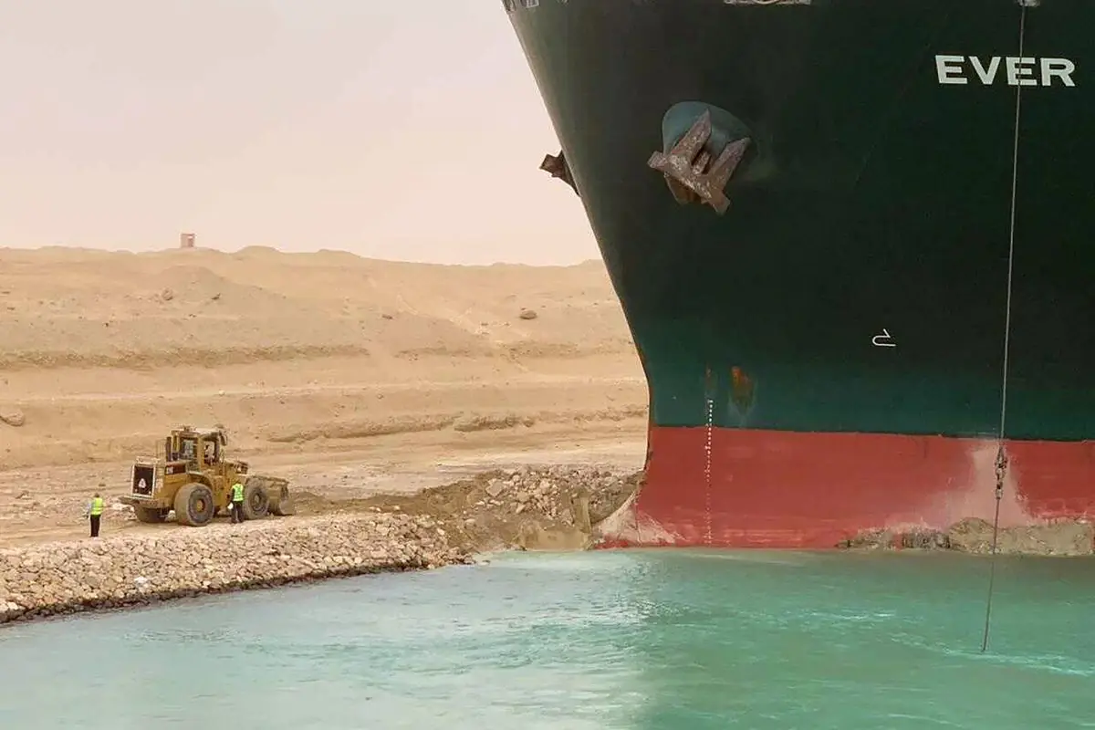 Como o navio ficou preso no Canal de Suez?