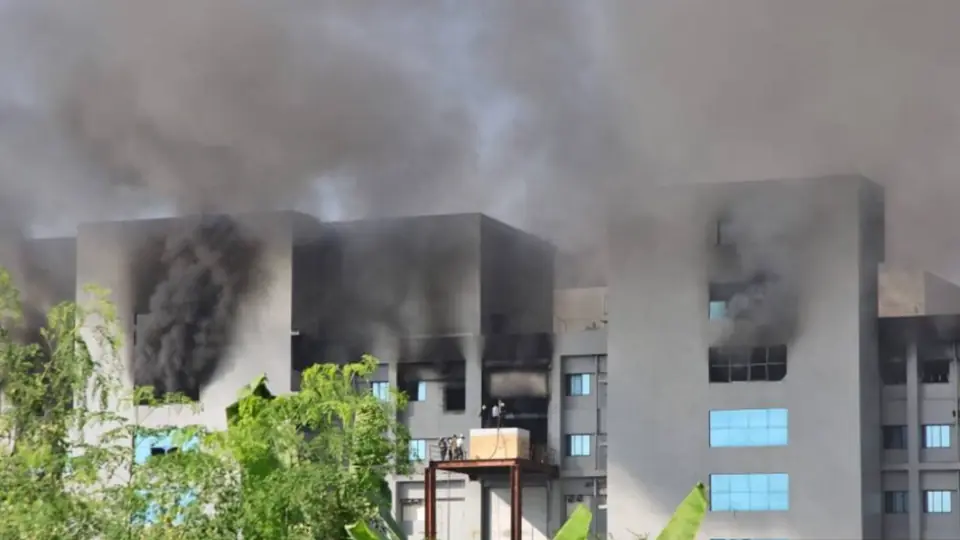 Um incêndio tomou conta de um edifício do Instituto Serum, empresa da Índia que produz vacinas contra Covid-19 com tecnologia da AstraZeneca e da Universidade de Oxford, chamada Covishield, nesta quinta-feira (21), na cidade de Pune.